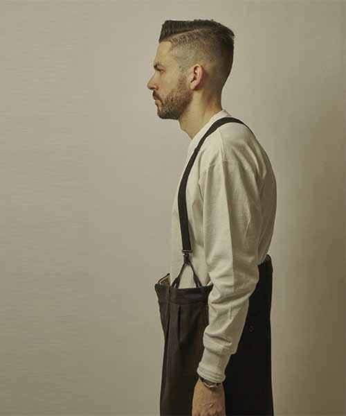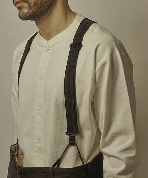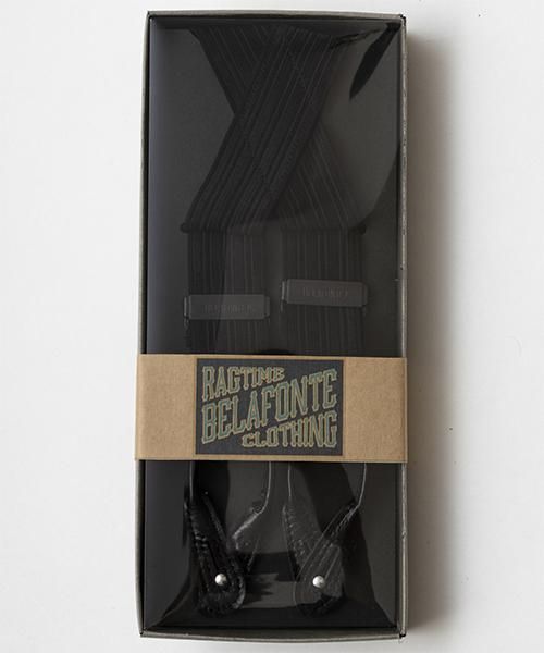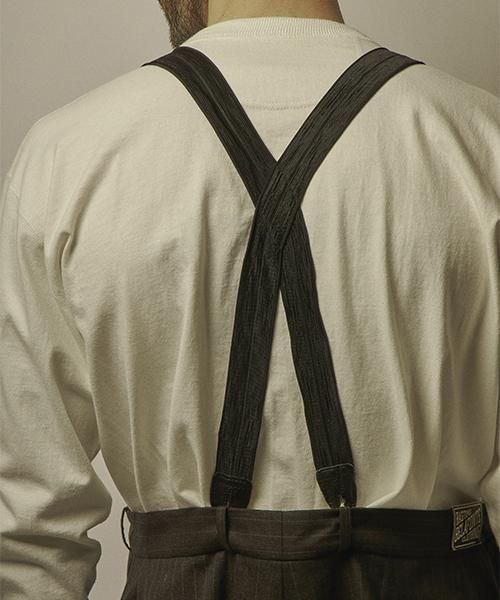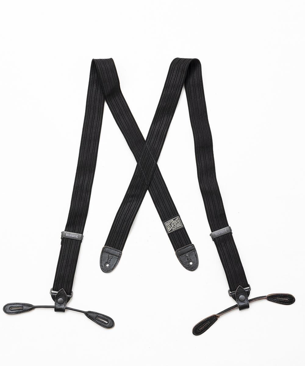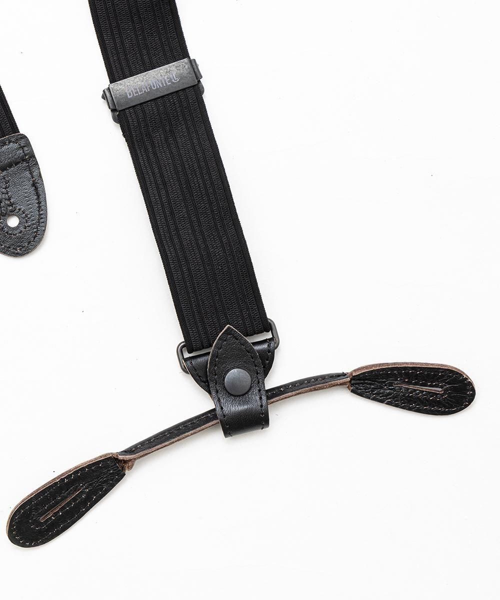 Original suspenders made with a unique elastic mix and backside two point split for attachment with buttons.