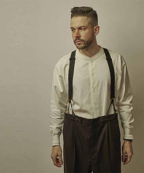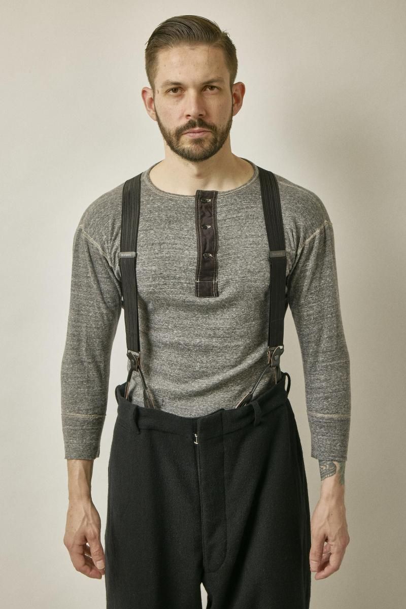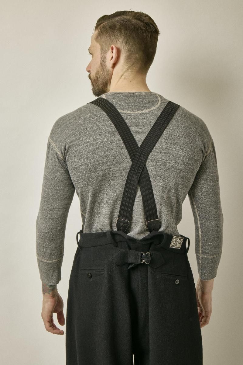 珍しい後ろも二つに割れたタイプのボタン留めサスペンダー