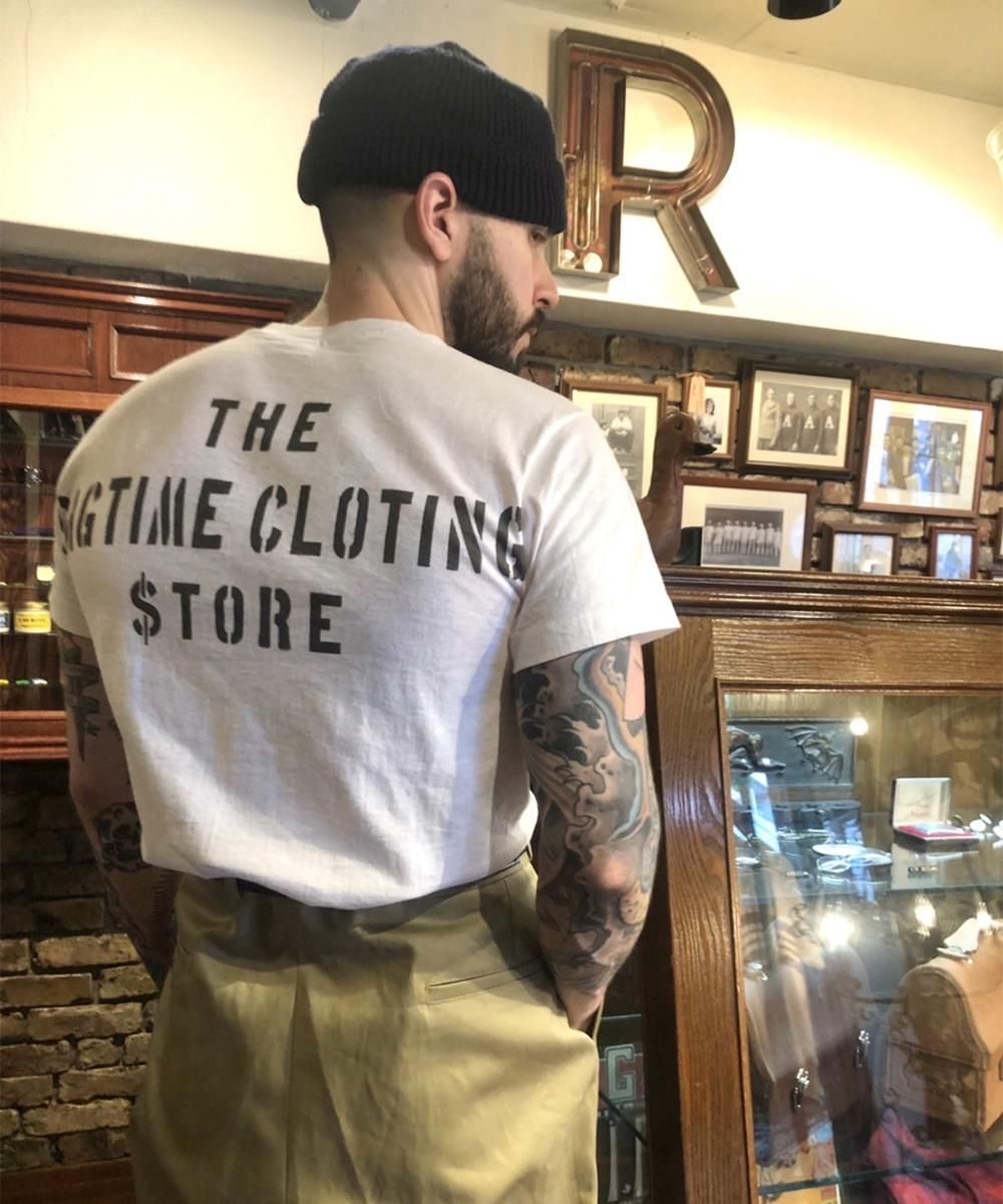 袖先と裾の仕様は折り返しにシングルステッチの縫製で丸胴仕様のTeeシャツです。