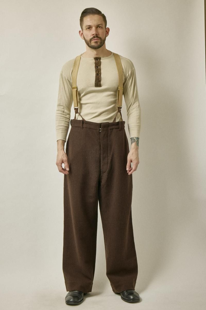 珍しい後ろも二つに割れたタイプのボタン留めサスペンダー